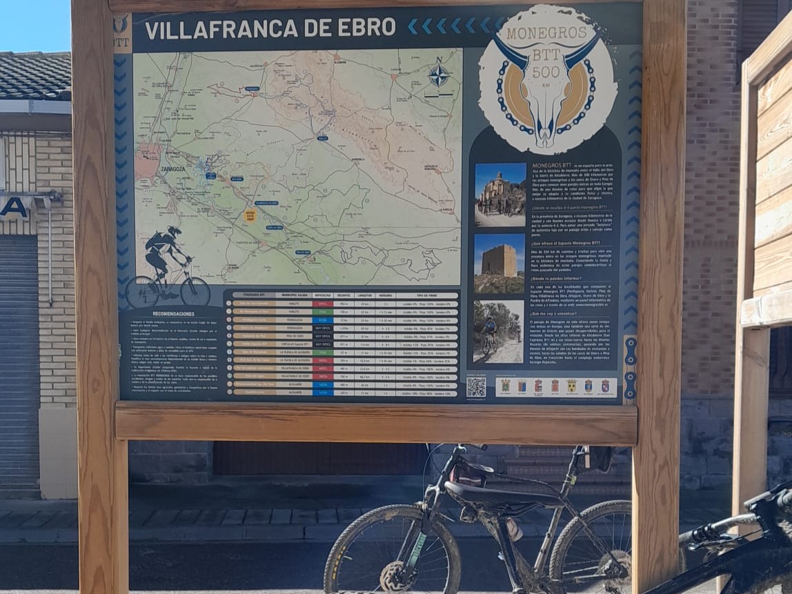 El primer tramo hasta Pastriz se realiza por el nuevo carril-bici que han colocado a un lado de la carretera, tener cuidado con la gravilla porque no realizan limpieza periódica; este tramo nos servirá para “calentar” las piernas. Los siguientes segmentos son los clásicos caminos serpenteantes de piedras que llanean a lo largo de los galachos y la llanura del Río Ebro y llegamos a Villafranca de Ebro (km 24).